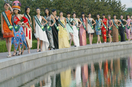 Updated: 2007-10-11 16:14 ![]() Miss Earth contestants pose beside a pool in a park in Wuxi, East China's Jiangsu Province, October 10, 2007, during the finale of the China region beauty pageant. The international pageant will be held on November 11 in Manila, Philippines. [Xinhua] |