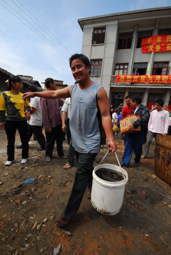 A local villager walks home with a barrel of wine scooped at a ceremony celebrating the autumn harvest in Hefang Township in the city of Shaowu, Fujian Province Thursday, October 11, 2007. The festival has a history of 1,416 years and occurs on the first day of the ninth month on the lunar calendar. The tradition is listed as an intangible cultural heritage of Fujian Province. [newsphoto]