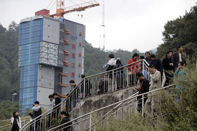 Updated: 2007-10-19 21:33 ![]() Visitors try to view the launch site of China's first moon orbiter, Chang'e I, from a sightseeing platform at the Xichang Satellite Launch Center (XSLC) located in Southwest China's Sichuan Province October 18, 2007. Chang'e is set to be launched on October 24. [newsphoto]