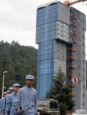 Updated: 2007-10-19 21:33 ![]() Workers in uniform make final preparations before China's first moon orbiter, Chang'e I, takes off at the Xichang Satellite Launch Center (XSLC) located in Southwest China's Sichuan Province October 18, 2007. Chang'e is set to be launched on October 24. [newsphoto]