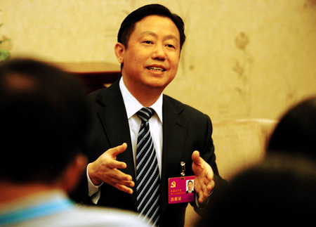 Entrepreneur Zhou Haijiang speaks during a group discussion of the congress in Beijing, October 19, 2007. [Xinhua]