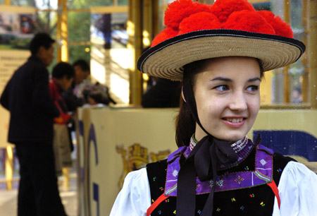 Updated: 2007-10-20 15:20 ![]() A German woman in traditional costume is seen at the German Avenue, an exhibition featuring German technology, economy, culture and food on a square in Nanjing, East China's Jiangsu Province, October 19, 2007. [Xinhua]