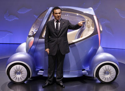Updated: 2007-10-24 20:47 ![]() Nissan Motor Co. and Renault SA Chief Executive Carlos Ghosn poses with the Pivo2 electric concept vehicle during the 40th Tokyo Motor Show in Chiba, east of Tokyo October 24, 2007. [Agencies]