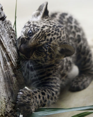 An eight weeks old jaguar cub plays in his enclosure at the Munich zoo October 26, 2007. The jaguar cub was born on September 2nd in the zoo. [Agencies]