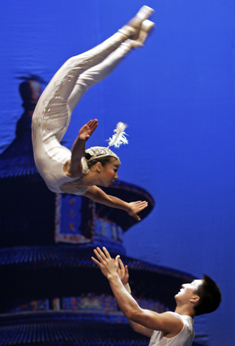 Artists from Chinese Acrobatic Circus perform at Lisbon's Coliseum October 26, 2007. [Agencies]