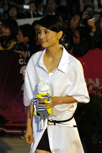 Chinese actress Yuan Quan poses on the red carpet at the 16th China Golden Rooster and Hundred Flowers Film Festival in Suzhou of eastern China's Jiangsu Province October 27, 2007. [Xinhua]