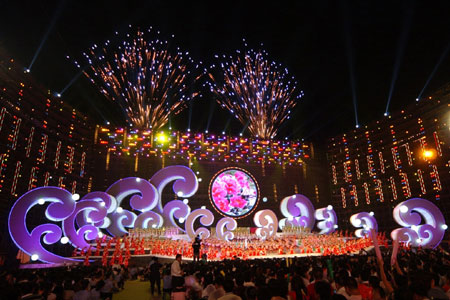 Firework illuminates the opening gala of the 9th Nanning International Folk Song Arts Festival. The annual event, held alongside with the China-ASEAN Expo, opened in Nanning, October 28, 2007. [Xinhua]