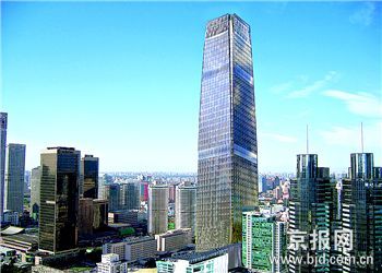 The view of the 78-storey main building of the third-phase construction project in Guomao, or China World Trade Center, a major business area in Chaoyang District, Beijing, is seen in this undated photo released by ben.com.cn. The 330-meter-high building, with 74 storeys on the ground and 4 underground, is expected to become the highest in the Chinese capital city upon completion in 2009. [cnsphoto]