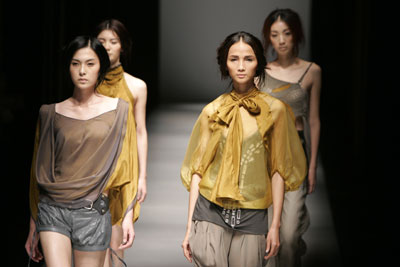 Models present a creation from Turkish designer Bora Aksu as part of Shanghai Fashion Week October 30, 2007. [Agencies]