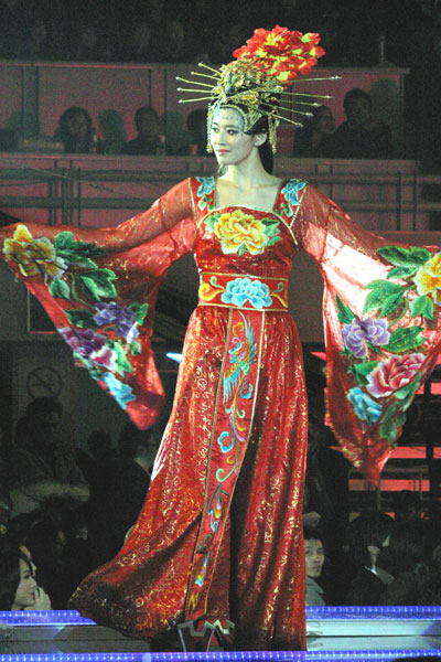 A model displays traditional Chinese Han costume during the 1st Chinese Top Model Awards in Xuzhou, October 30, 2007. [Xinhua]
