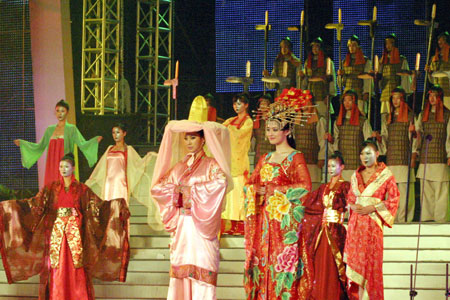 Models display traditional Chinese Han costume during the 1st Chinese Top Model Awards in Xuzhou, October 30, 2007. [Xinhua]