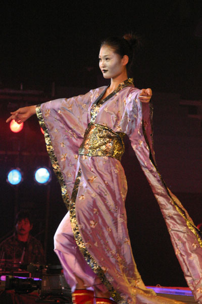 A model displays traditional Chinese Han costume during the 1st Chinese Top Model Awards in Xuzhou, October 30, 2007. [newsphoto]