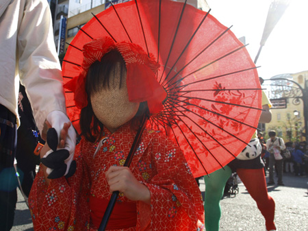 Participants march during a Halloween parade in Kawasaki, south of Tokyo, October 28, 2007. [Agencies]