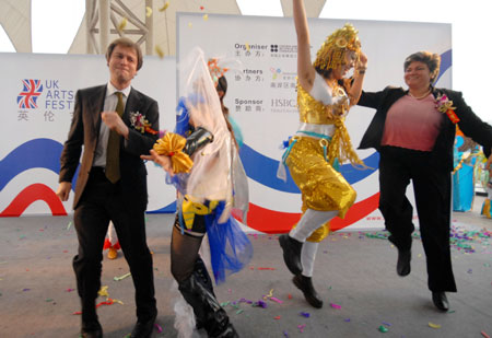 Officials of British Council Chongqing take part in the closing ceremony of UK Arts Festival 2007 in Chongqing, October 31, 2007. [newsphoto]
