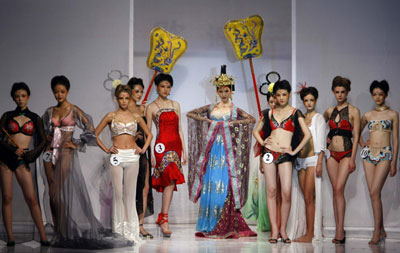 Models present creations for 'Ordifen Cup' 2007 Lingerie Innovative Design Contest at China Fashion Week in Beijing November 6, 2007. [Agencies]