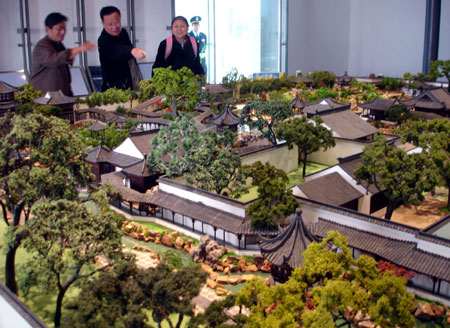 Local citizens view the miniature scenery of the Humble Administrator's Garden in Suzhou Garden Museum in Suzhou, East China's Jiangsu Province, November 7, 2007. [newsphoto]