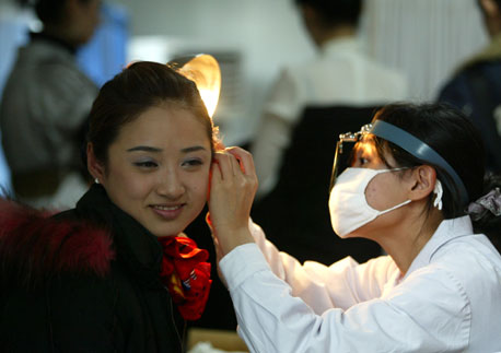 Updated: 2007-12-01 14:21 ![]() Candidates for Air China stewardesses receive a physical examination in Beijing November 30, 2007. Air China, the official carrier of the Beijing Games, launched a new round of nationwide recruiting recently to find 300 attendants to serve on popular flights during the Beijing Olympic Games next year. [Newsphoto] |