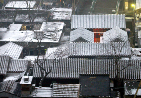 Snow covers the roofs of a hutong area of Beijing as the capital embraces the first snowfall of the year, December 10, 2007. [Xinhua]