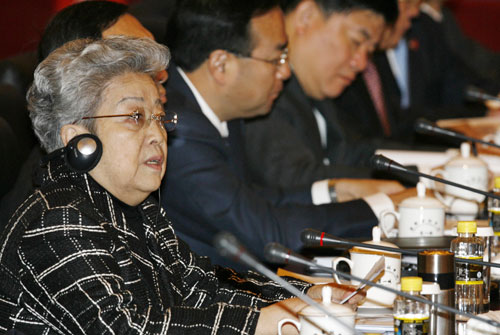 Chinese Vice-Premier Wu Yi gives an opening statement during the opening of The Third Strategic Economic Dialogue in Xianghe, near Beijing, December 12, 2007. [Agencies] |