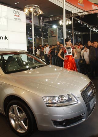 Updated: 2007-12-14 09:43 ![]() Visitors watch a new type of Audi car during the 3rd China (Changsha) International Automobile Exposition held in Changsha, capital of Central China's Hunan Province, December 13, 2007. [Xinhua]