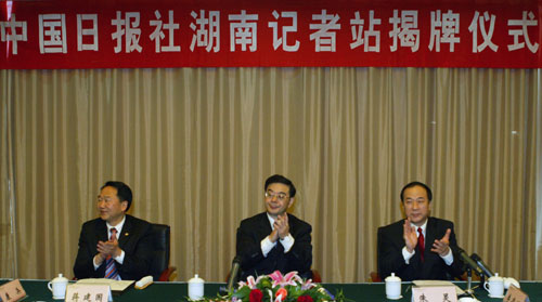 Changsha -- As governor of a province with a 63-million population, Zhou Qiang is really tight-scheduled. But reading China Daily is also on his agenda every day. Friday, at the opening ceremony of China Daily’s Hunan Bureau, Zhou, the provincial governor, said:"I am a loyal reader of China Daily, and I surf on China Daily website everyday." He said he believes that the national English-language newspaper could bridge the province, where the booming economy and tremendous growth potential are attracting more multinational companies, and the rest of the world. The Hunan Bureau marks the first step of China Daily’s new endeavor to expand local coverage. According to Zhu Ling, editor-in-chief of China Daily, the newspaper is also launching another seven local bureaus in coming months, such as those in Chongqing Municipality, Hubei Province and Xinjiang Uygur Autonomous Region. "Increasing local coverage is a strategic part of China Daily's future development," Zhu said. "Our readers are showing more interest in knowing more about local development. Rise of Central China already made the region a hot topic in media." Recently, three cities in Hunan – Changsha, Zhuzhou and Xiangtan – have been approved by central government to be a national experimental zone for energy saving and environmentally friendly programs. "Overseas investors are swarming in," Zhou said. Many are bringing their latest technologies to the province. For example, ArcelorMittal, the world's biggest steel producer, has agreed to transfer its advanced technology to Valin Steel Tube & Wire, its partner in Hunan. ArcelorMittal now owns 33 per cent of the stake of the Shenzhen-listed company, which is one of the top 10 Chinese steel mills. Hunan is transforming itself into an advanced manufacturing hub in Central China, focusing on key sectors, such as construction equipment, information technology and steel industries. This year, Zhou predicted, the province's gross domestic product will hit 900 billion yuan, jumping 14.2 percent from 2006.