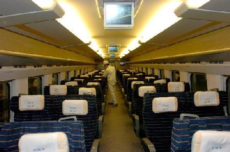 Updated: 2007-12-25 16:36 ![]() An employee works in a home-made CRH2-300 high speed train on the production line in Qingdao, East China's Shandong Province, December 22, 2007. The bullet train is designed to run more than 300 kilometers per hour, and is among the fastest trains in the world. [Xinhua]