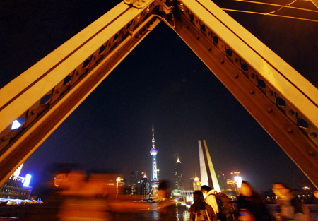 Shanghai switches on its landscape lights on Friday night after a lapse of more than four weeks. By the end of January, the city decided to switch off all landscape lighting and asked major companies and shops to turn off large advertising signs to conserve electricity and help combat the snow disaster that hit many parts of China. The city's landscape lights will be turned on every Friday and Saturday between 6:30pm and 9:30pm starting this weekend. [Xinhua]