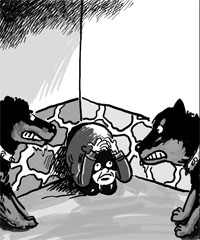 A man found himself cornered by the two Tibetan mastiffs he was trying to steal on Tuesday night in Tianjin.