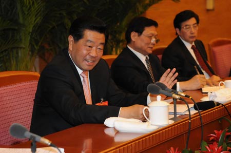 Jia Qinglin, during a panel discussion with NPC deputies from Beijing, encouraged them to pool together resources from all walks of life, make the upcoming Olympic Games and Paralympics a success, and grasp the opportunity to boost Olympic economy. [Xinhua]