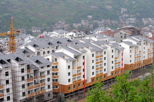 Homes are nearly completed for residents who were affected by the Three Gorges Dam project in the town of Gaoyang, in Xingshan County, Central China's Hubei Province, April 13, 2008. Gaoyang is the last new town to be built to relocate people from the world's largest hydro-electric project. [Xinhua]