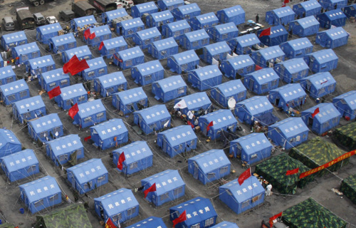 A view of the main staging area in Yingxiu Township, the epicentre of the China earthquake, in Sichuan province May 24, 2008. [Agencies]
