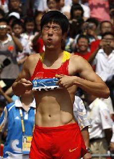 Gone was his flashy red T-shirt, so characteristic of China's athletes. In its place, he wore a plain white one. Maybe it was his T-shirt that made him look pale and tired, a drop of perspiration hanging from the corner of his left eyebrow, when he spoke to CCTV. But his voice was steady as ever.