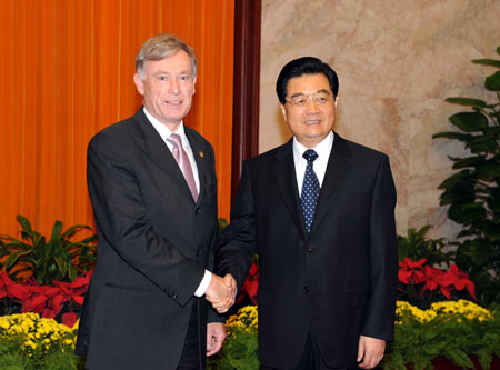 The meeting started with Hu welcoming his German counterpart to the Paralympic Games and extending congratulations to German athletes on their "excellent performance" at the Beijing Olympic Games.
