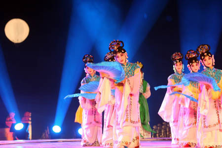 "The moon over the Lugou (Marco Polo) Bridge at dawn" Mid-Autumn Festival Soiree is held at the Lugou Bridge in Beijing, capital of China, on the evening of September 12, 2008. The Mid-Autumn Festival, a traditional Chinese holiday for family reunion and mooncakes, falls on September 14 this year. [Xinhua]