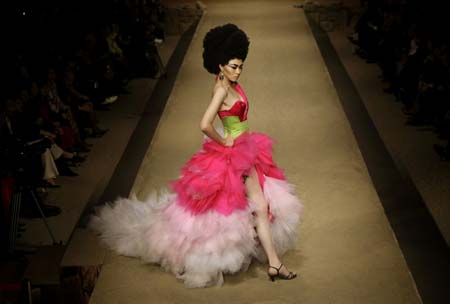 A model presents a creation by designer Ma Yanli during the Maryma series high fashion show at China Fashion Week in Beijing, November 7, 2008. [Agencies]