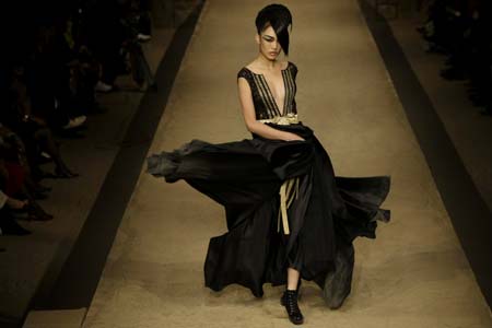 A model presents a creation by designer Ma Yanli during the Maryma series high fashion show at China Fashion Week in Beijing, November 7, 2008. [Agencies]