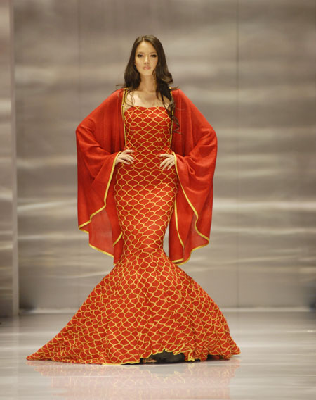 Zhang Zilin, China's reigning Miss World, presents a creation by Taiwan designer Gioia Pan at China Fashion Week in Beijing, November 7, 2008. [CFP]