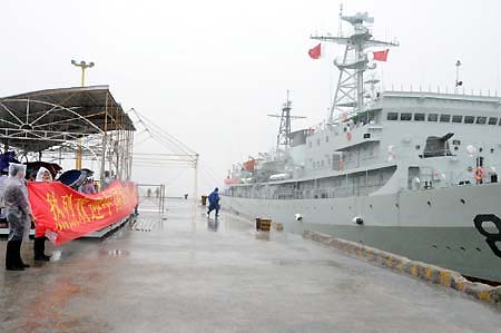Chinese naval training ship "Zheng He" arrives at Tien Sa Port of Danang City, on November 18, 2008, starting a five-day visit to Vietnam. [Xinhua]