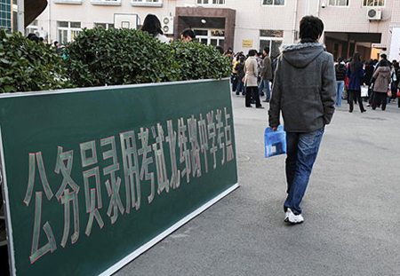 In order to create a fair and clean environment for the most intense competition with at least 98 out of every 100 exam takers to have no chance for success, local departments, in cooperation with the police and radio management bureaus, severely cracked down on exam cheaters using wireless apparatus and the Internet, according to the Ministry of Human Resources and Social Security. Those who cheated in the exam would have "zero score" and would not be allowed to apply for the exam in five years, the ministry said, adding relevant departments had paid great attention ensuring exam papers were not leaked before the exam. The 2009 central government recruitment offered only 13,500 positions, roughly the same with previous years. The results for the written exam would be announced in January and those who passed it would enter into the interview round. A government job was still considered a plum post for university graduates and other Chinese job-seekers as the global financial crisis prompted many private companies to cut the number of employees, the Guangzhou Daily reported. It said the economic and social status, welfare insurance and prestige associated with a government position in China had attracted more and more applicants. Statistics show more than 4,500 applicants would compete for a position with the China Disabled Persons' Federation, ranking the most popular government post among exam takers. Positions with seismological bureaus across the country were also popular with this year's exam takers, according to the Modern Express, a newspaper based in southern Jiangsu Province, partly due to the devastating earthquake that struck southwestern Sichuan in May. Hepatitis B virus carriers would be considered eligible candidates when they were ruled out to be Hepatitis B patients after medical examination, according to a new physical check-up standard for civil servant recruitment, which was aimed at removing employment discrimination. The written test includes two sessions, the administrative aptitude test(AAT) in the morning and the essay test in the afternoon, before a more competitive interview at the beginning of 2009. China has been organizing civil servant recruitment examinations every year since 1994. |