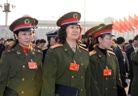 Deputies to the First Session of the 11th National People's Congress (NPC) walk to attend the opening of the NPC session at the Great Hall of the People in Beijing, capital of China, March 5, 2008. [Xinhua]