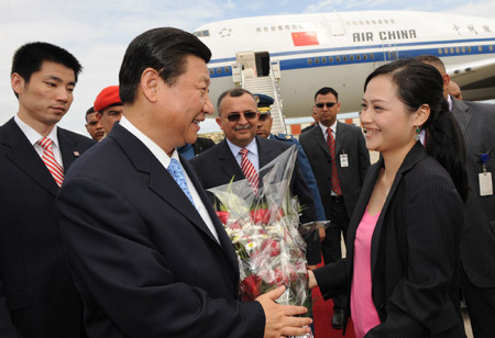 Venezuelan Vice President Ramon Carrizales, Minister of Foreign Affairs Nicolas Maduro, Chinese Ambassador in Caracas Zhang Tuo and representatives of local Chinese community welcomed Xi at the airport.