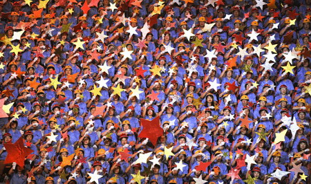 Workers in Beijing rehearse for a vocal concert featuring patriotic songs, August 26, 2009. [Xinhua]
