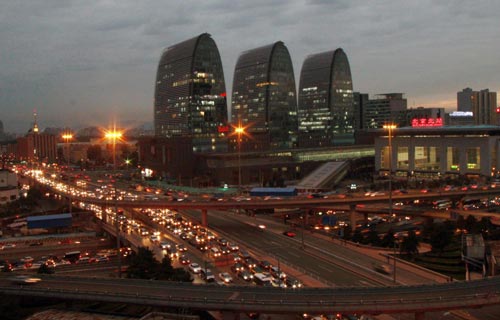 The view of the traffic on a flyover near Xizhimen subway station during the afternoon rush hour in Beijing, Sept 19, 2010. [Photo/Xinhua]