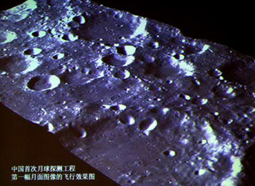 China publishes its first picture of the moon captured by Chang'e I, the country's first lunar probe, on Monday.