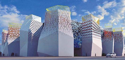 This showpiece was inspired by the late Nikolay Nosov, Russia's favorite children's author. Instead of Nosov's mischievous young anti-hero Neznaika (Russian for "know-nothing"), guests will have virtual guide Xue Xue (Chinese for "study") to show them the way. The light-hearted animation will appear on a giant transparent prism with 12 faces holding a "Crystal of Knowledge".