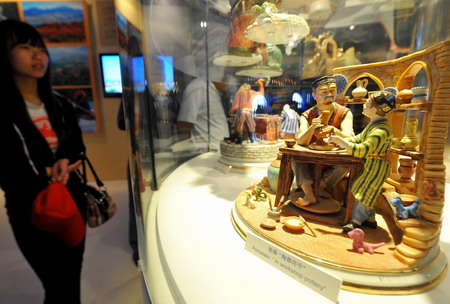 Porcelain statues are on display at the Uzbekistan Pavilion at the World Expo park in Shanghai, May 10, 2010. [Photo/Xinhua]