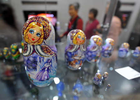Matryoshka dolls, also known as the Russian nesting dolls, are on display at the Russia Pavilion at the World Expo park in Shanghai, May 14, 2010. [Photo/Xinhua]
