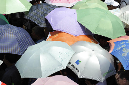 Visitors stay under umbrellas to shield themselves from sunburns at Shanghai Expo Park, May 25, 2010. [Photo/Xinhua]