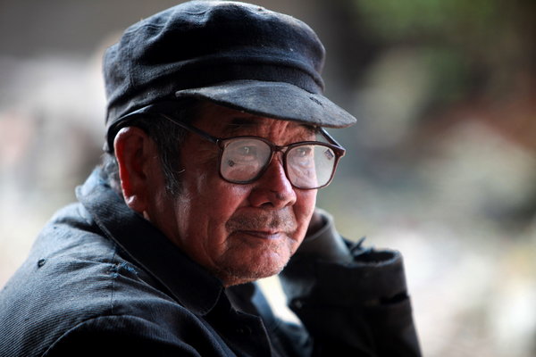 | Jiang Deji fixes a leaky cauldron on Nov 13. [Photo/Xinhua] |