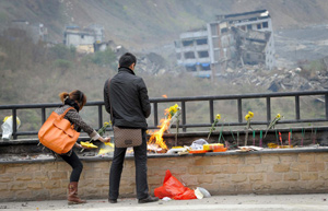 During the Qingming Festival, or the Tomb-sweeping Day, people come to the old town of Beichuan to mourn for those dead in the 8-magnitude earthquake in 2008.